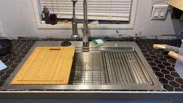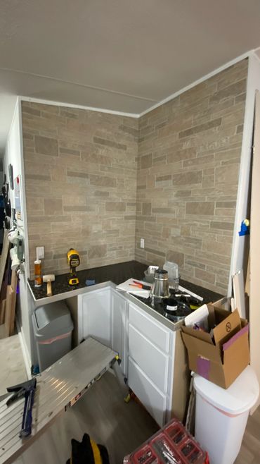 FULL Kitchen Renovation. Custom built. Hand finished. Click to see the extent of remodeling a kitchen, tiling a countertop or finishing cabinetry!